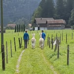 Wir gehen bei fast jedem Wetter. Achten Sie auf gute Schuhe und dem Wetter angepasste Kleidung (keine Regenschirme). Wenn der Föhnwind bläst, die Wege eisig sind oder im Sommer bei grosser Hitze, bleiben jedoch auch unsere Tiere gerne im Stall oder auf der Weide.