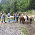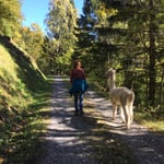 Bist Du ebenso fasziniert von diesen Tieren wie wir? Möchtest Du uns begleiten bei einem Spaziergang, und dabei ein Alpaka am Halfter führen? Wir versprechen Dir ein wunderschönes und unvergessliches Erlebnis. Es gibt nichts, das schneller entschleunigt und entspannt, als sich auf diese Tiere einzulassen. Oft haben wir schon erlebt, dass gestresste, nervöse Menschen bei uns eintreffen, und bereits nach wenigen Schritten löst sich die Anspannung. Wir laufen gemütlich (Alpakas lassen sich nicht hetzen) mit unseren Tieren, und vergessen dabei was war und was kommt. Wir sind im Hier und Jetzt! Es ist immer wieder schön zu sehen, wie Alle mit einem Strahlen im Gesicht zurück kommen.